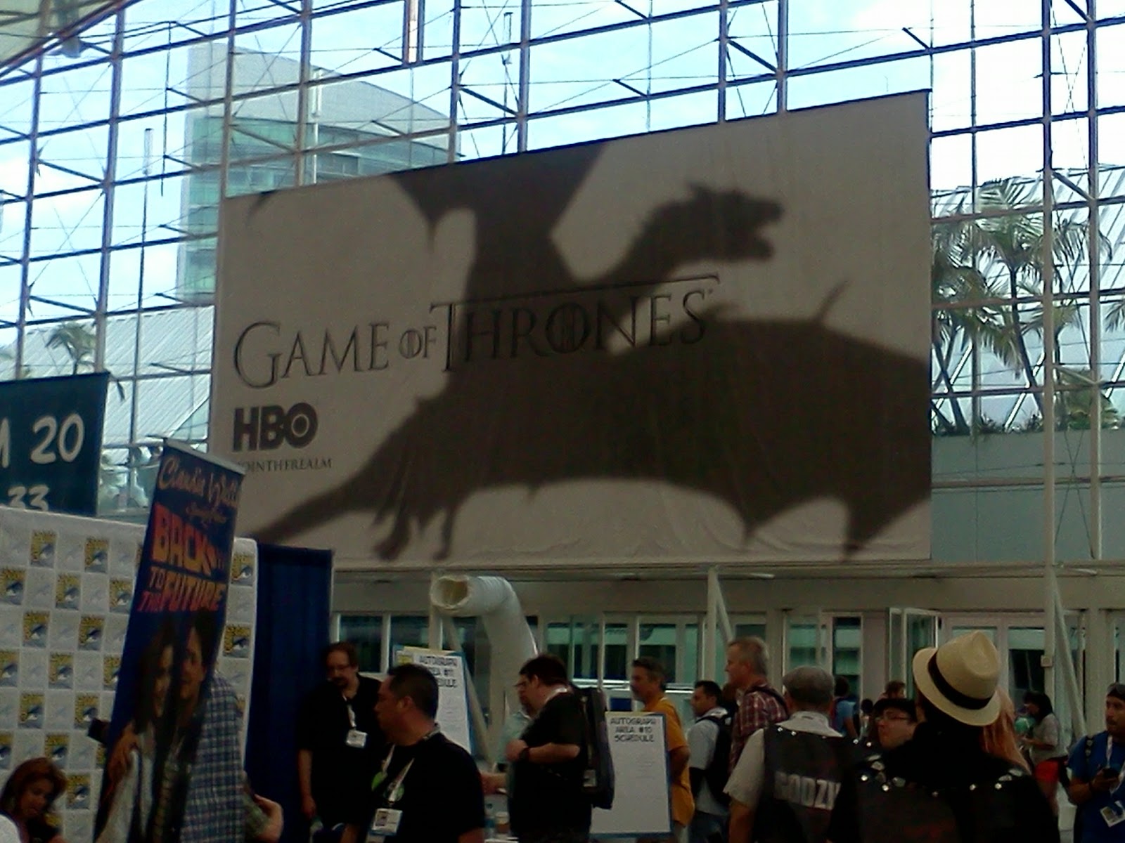 That night was the Random House party.  There’s an embarassing story about me changing for the party in my friends’ car, but it won’t be told here.  Met Peter David,  George R.R. Martin, and also fellow Crown authors Scott Sigler (Pandemic) and Peter Stenson (Fiend).  I also got free drinks served to me by a woman dressed as Daenerys Targaryen (the bar was doing a Game of Thrones theme for Comic Con) while pictures of my book covers (and several other people’s) flashed up on screens around the bar.