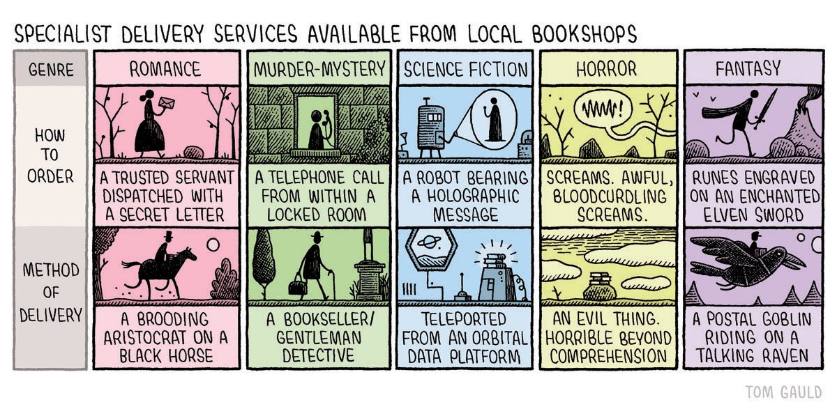 For now, have a Tom Gauld cartoon. Next time… well, I probably won’t tell you anything.