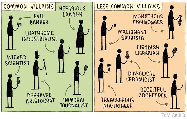 Y’see, Timmy, for every character, the story is about them. In the same way I’m the main character in my life story and you’re the main character in yours, the villain believes the story is all about them. Try to think of the most reprehensible character you can, then put yourself in their shoes. They all believe they’re in the right. Yes, even if it’s a drug lord or a DVD pirate or a mutant master of magnetism.
